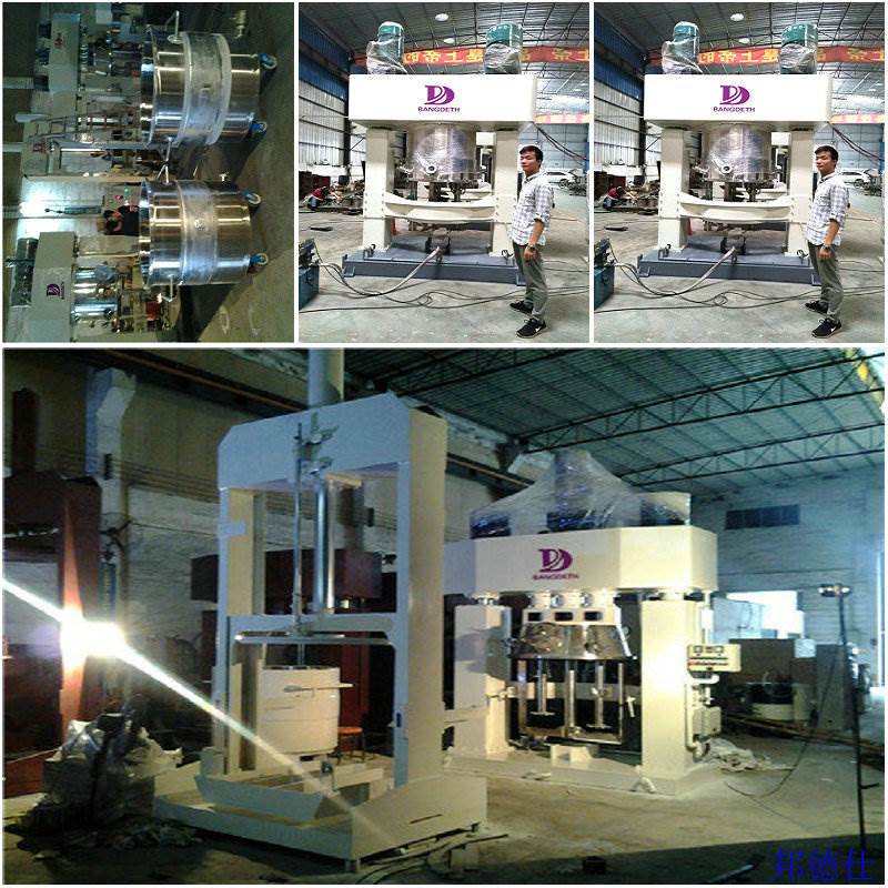 它是一种集反应,混合,混合和分散为一体的高效多功能混合设备。双行星高速真空混合机适用于液-液,固液,糊状糊,粉状糊,材料密度,百分比歧异,从低粘度到高粘度(150万Cps)的各个行业,适用于能源,电子,化工,化妆品,日用化工,食品和其他行业的应用。材料,不同的行星轮传动比设计被设计成具较大的扭矩范围,是胶黏剂,硅胶,锂电池浆料等行业的混合产品;同时,该设备兼具刮墙,刮底,无死角,无残渣,清洗方便的功用,与众不同的控制系统,操作安全方便。该设备可装设选配的挤出设备,实现混合和卸料的一体化操作。对于有温度要求的物料,可匹配模温机,单独运转,控温精度高。